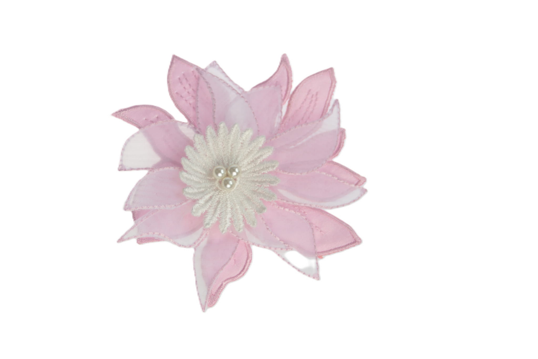 Z haftowanym środkiem i ozdobiona trzema perełkami.